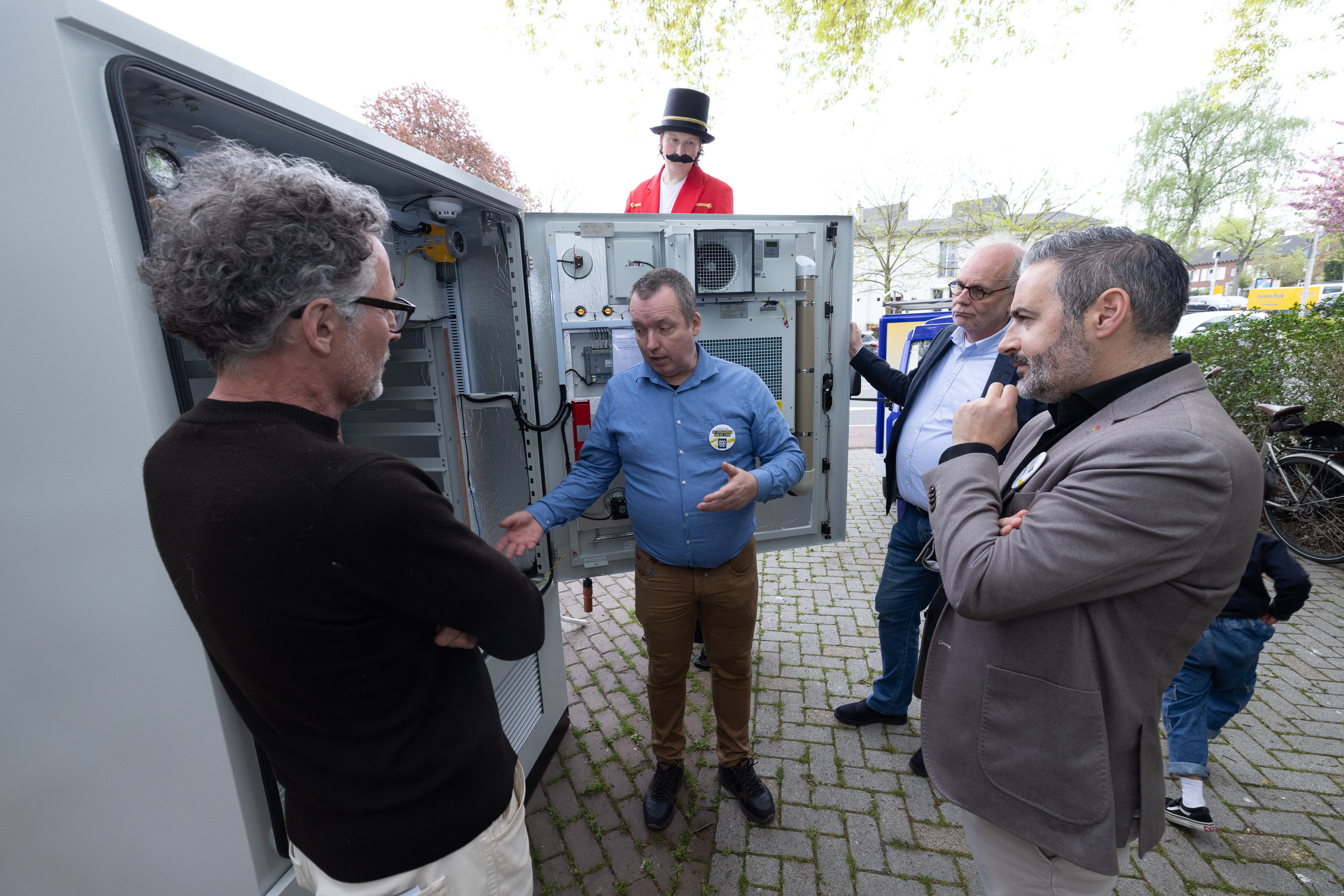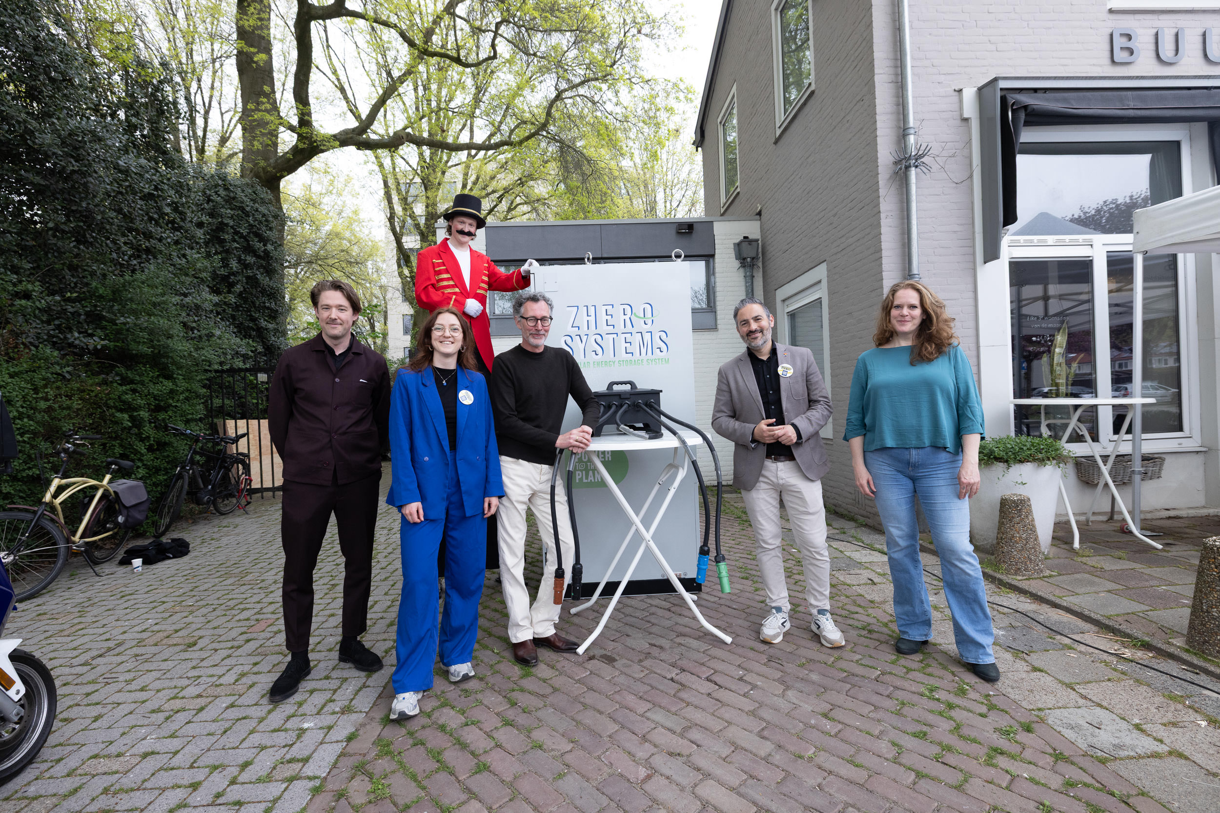 Bij Buurthuis Jeruzalem stond tijdelijk een voorbeeld buurtbatterij. Door symbolisch een stekker aan te sluiten, lieten we zien dat het project zich ontwikkelt van onderzoeken naar samen plannen maken.